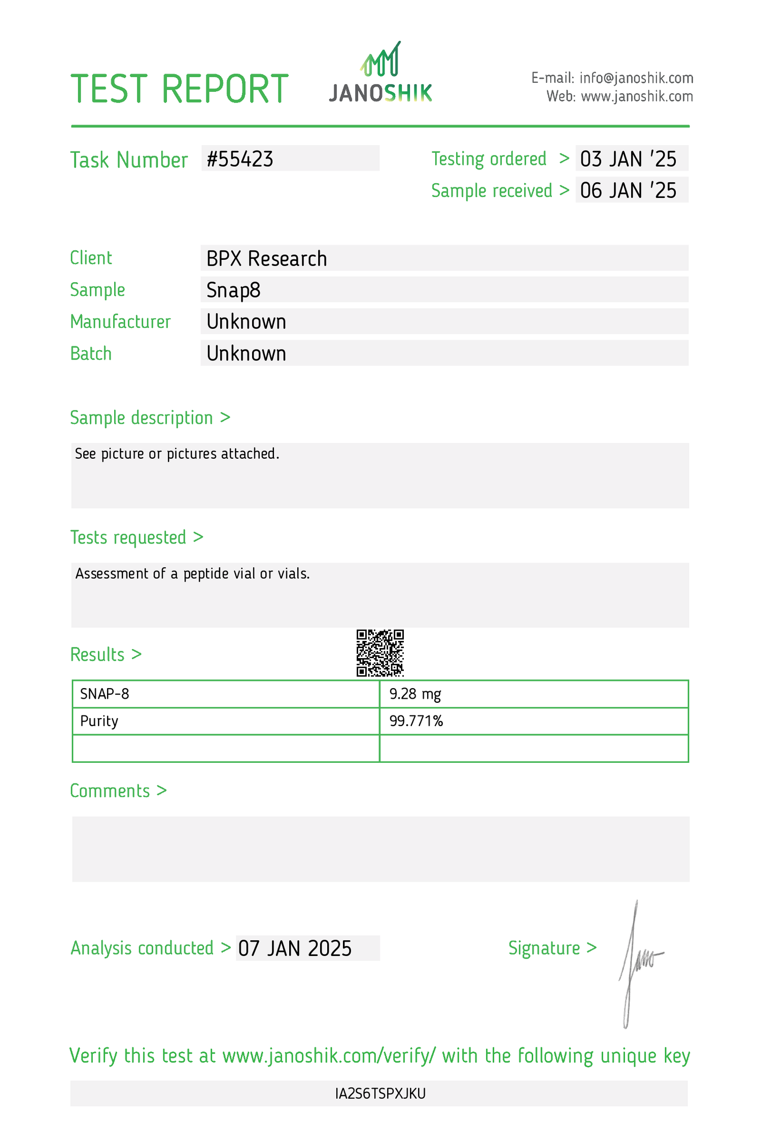 At biopeptideX, we take the quality of our products very seriously. Our latest test report showcases the exceptional purity of our product, with an impressive 99% purity and the perfect amount as advertised. This demonstrates our unwavering commitment to providing only the highest quality peptides to our customers.